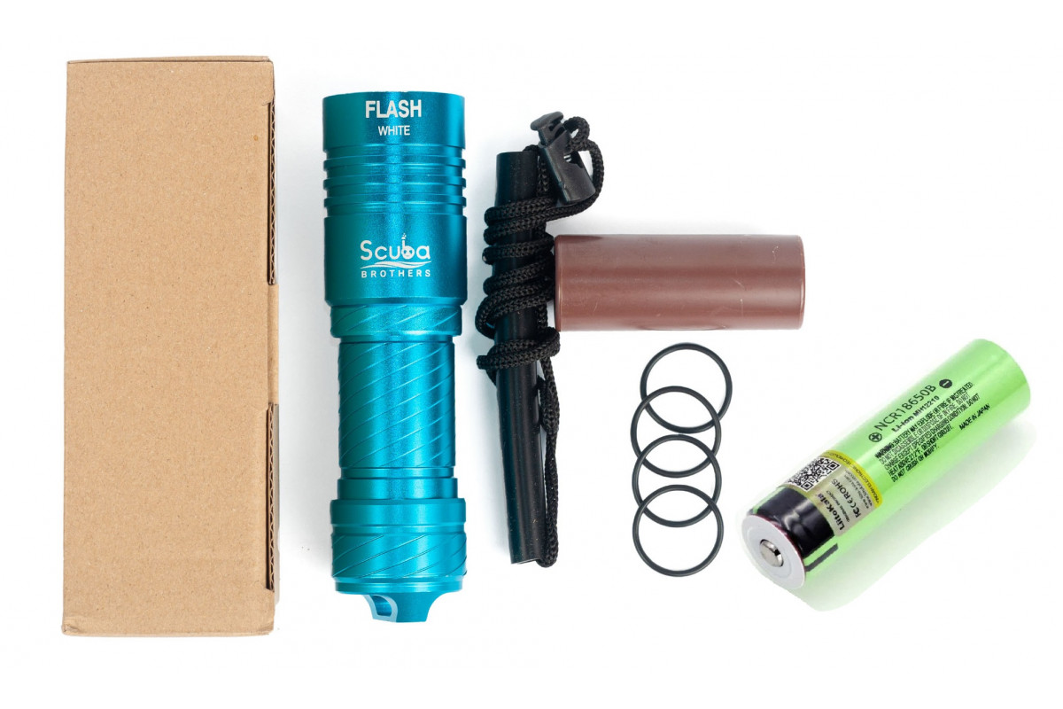 Фонарь SCUBA BROTHERS FLASH BLUE 2000Lm CREE XM-L L2, холодный белый свет, это подводный фонарь для охоты и дайвинга, с максимальной глубиной погружения 100 метров. SCUBA BROTHERS FLASH изготовлен из высокопрочного авиационного алюминия с анодированием. Удобный магнитный переключатель (ползунок). Фонарь очень яркий, лёгкий и компактный.