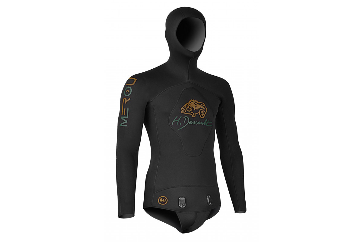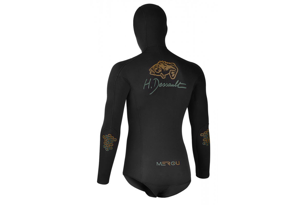 Куртка гидрокостюма H.DESSAULT MEROU BLACK имеет усиление на груди для большей защиты во время заряжения ружья, локти гидрокостюма усилены. Колени и голени штанов защищены усиленными накладками, которые защищают ноги подводного охотника от острых камней и кораллов, и продлевают срок жизни гидрокостюма.