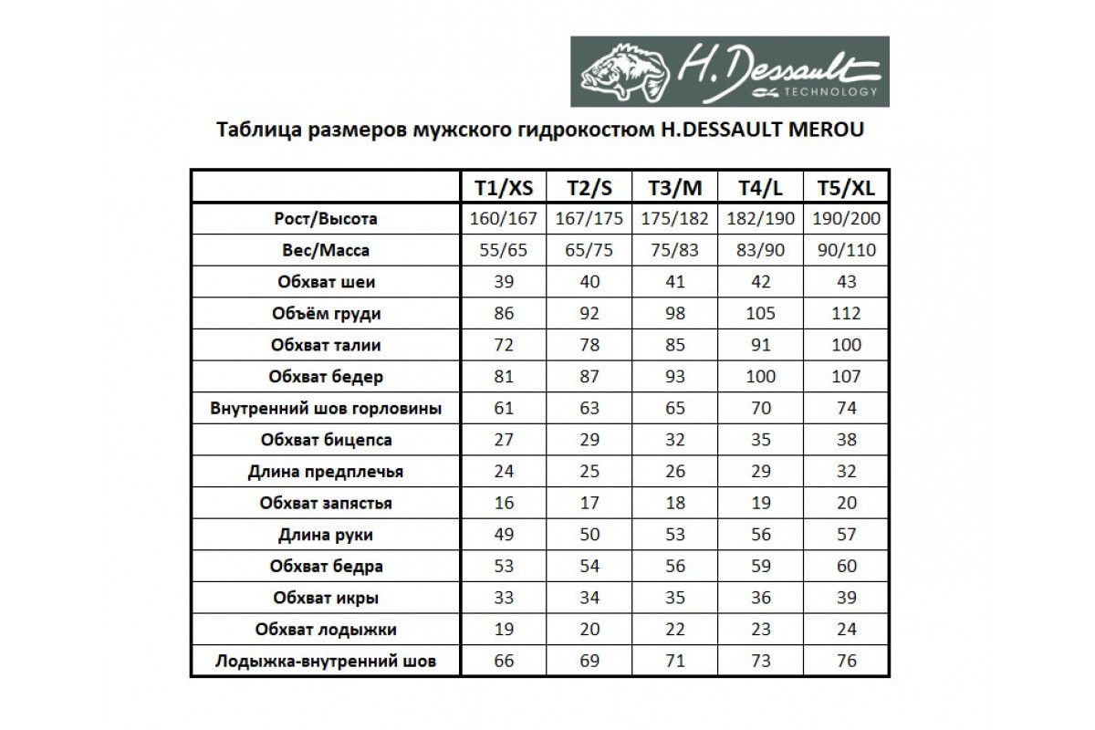 Гидрокостюм H.DESSAULT MEROU BLACK выпускается в двух вариантах толщины: 5.0 мм и 7.0 мм и в пяти размерах: Т1/XS, T2/S, T3/M, T4/L, T5/XL.