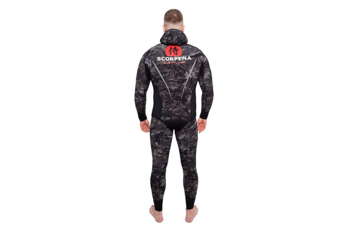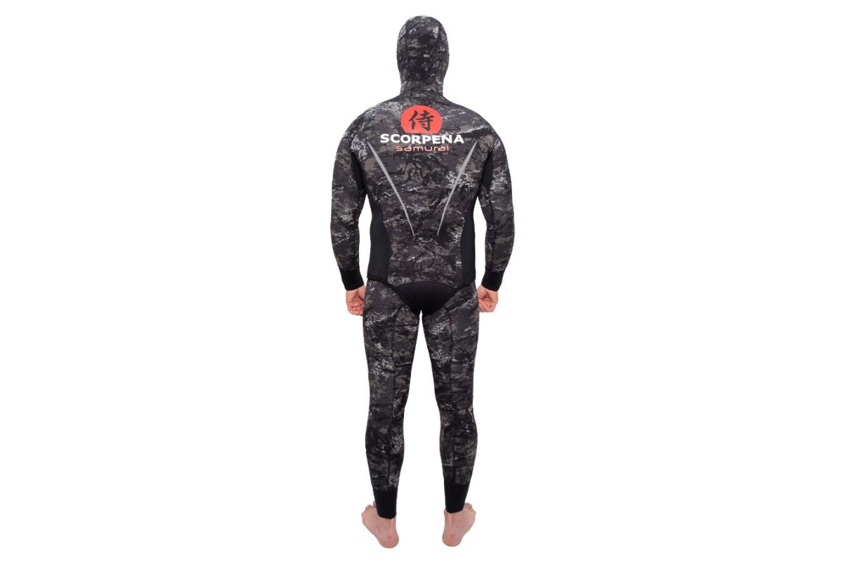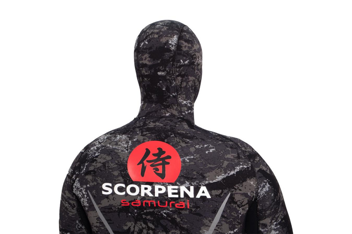 Гидрокостюм Скорпена Самурай Камо (Scorpena Samurai CAMO) является одним из самых удобных и тёплых массово выпускаемых неопреновых костюмов мокрого типа, что подтверждается многочисленными отзывами испытателей из самых экстремально холодных мест для погружений. Это стало возможным благодаря сочетанию удачной выкройки и подбору разных толщин и марок уникального неопрена производства японской компании Ямамото (Yamamoto).