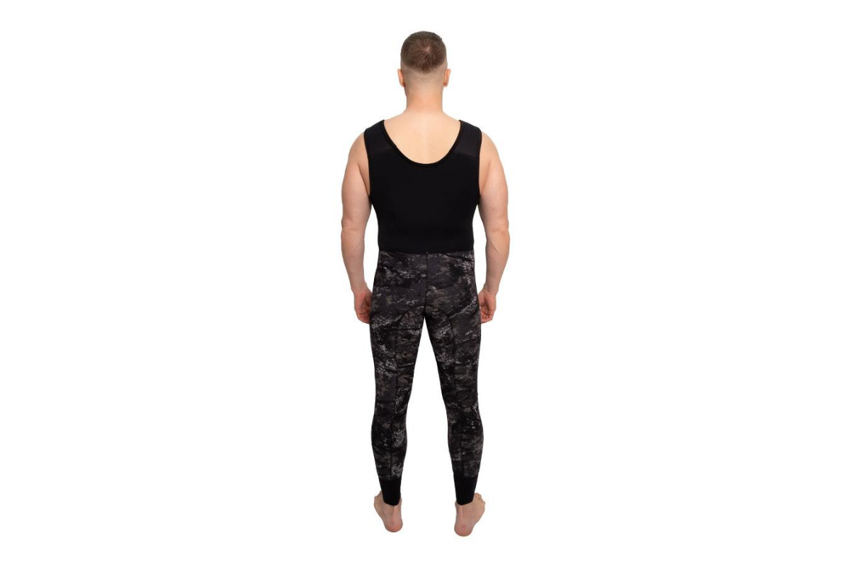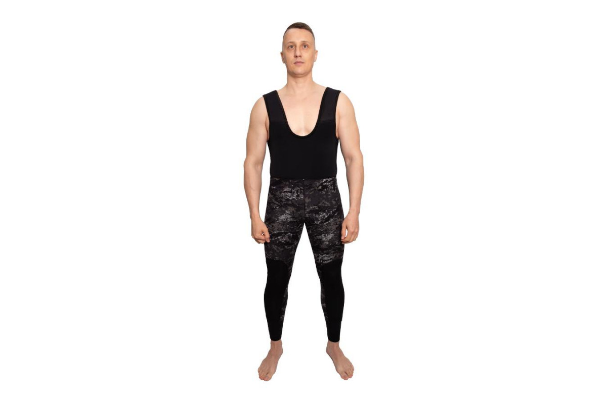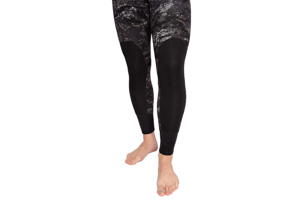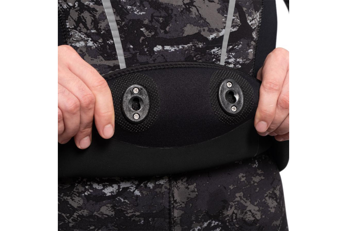 Камуфляжная расцветка, состоящая из контрастных деталей, разбивает силуэт охотника, делая его менее заметным на фоне подводного рельефа. Гидрокостюм обладает высокой степенью адаптивности: пользователь может самостоятельно укоротить высокий комбинезон с лямками (LongJohn) до "высоких штанов" (high pants) по любой из намеченных закрепок, которыми оснащена верхняя часть комбинезона.