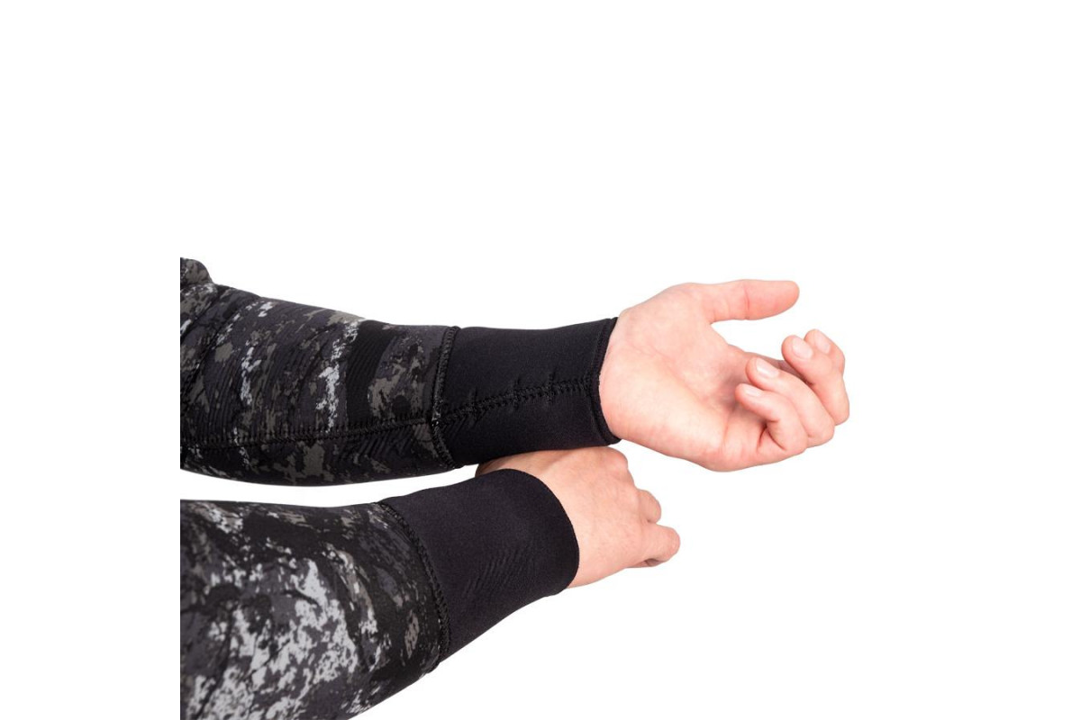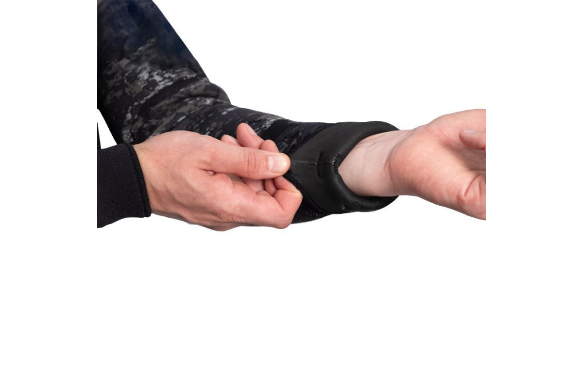 Для рукавов добавили удлинённые манжеты из неопрена меньшей толщины, с повышенной растяжимостью, чтобы облегание запястий было максимально плотным, а надевание и снимание куртки – ещё более комфортным. Также эти манжеты имеют несколько закрепок для самостоятельной подгонки длины рукавов пользователем.