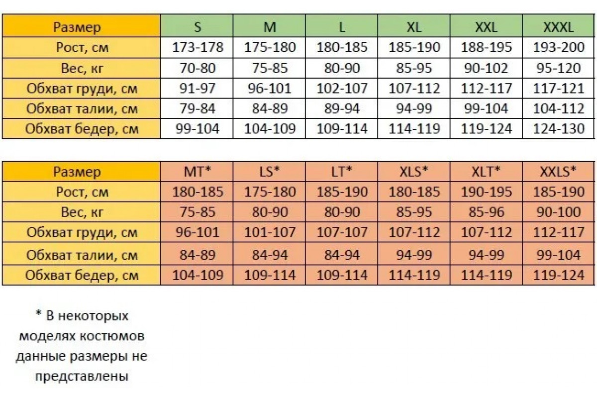 Размеры: мужские S, M, L, XL, 2XL, 3XL; женские: XS, S, M, L, XL