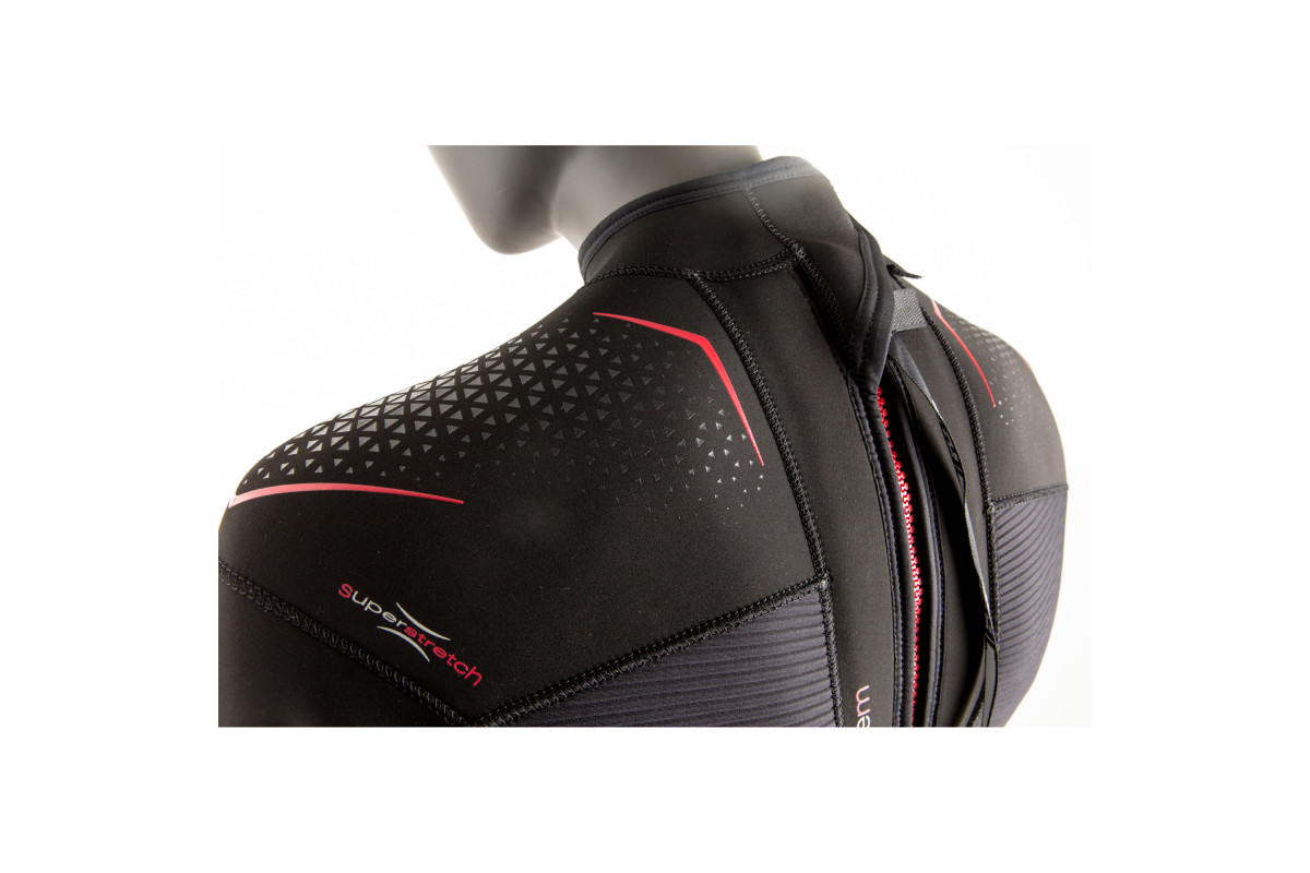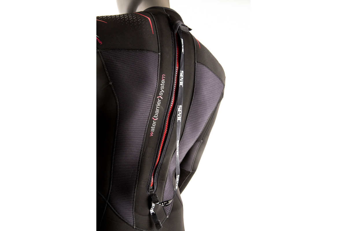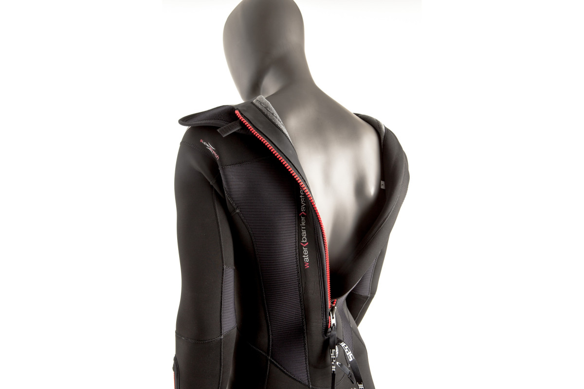 Система AQUASTOP на манжетах и щиколотках снабжена двойным неопреновым обтюратором и застежкой-молнией. Грудь и плечи, наиболее подверженные нагрузкам части костюма из-за трения снаряжения, были усилены специальными вставками с особым геометрическим рисунком.