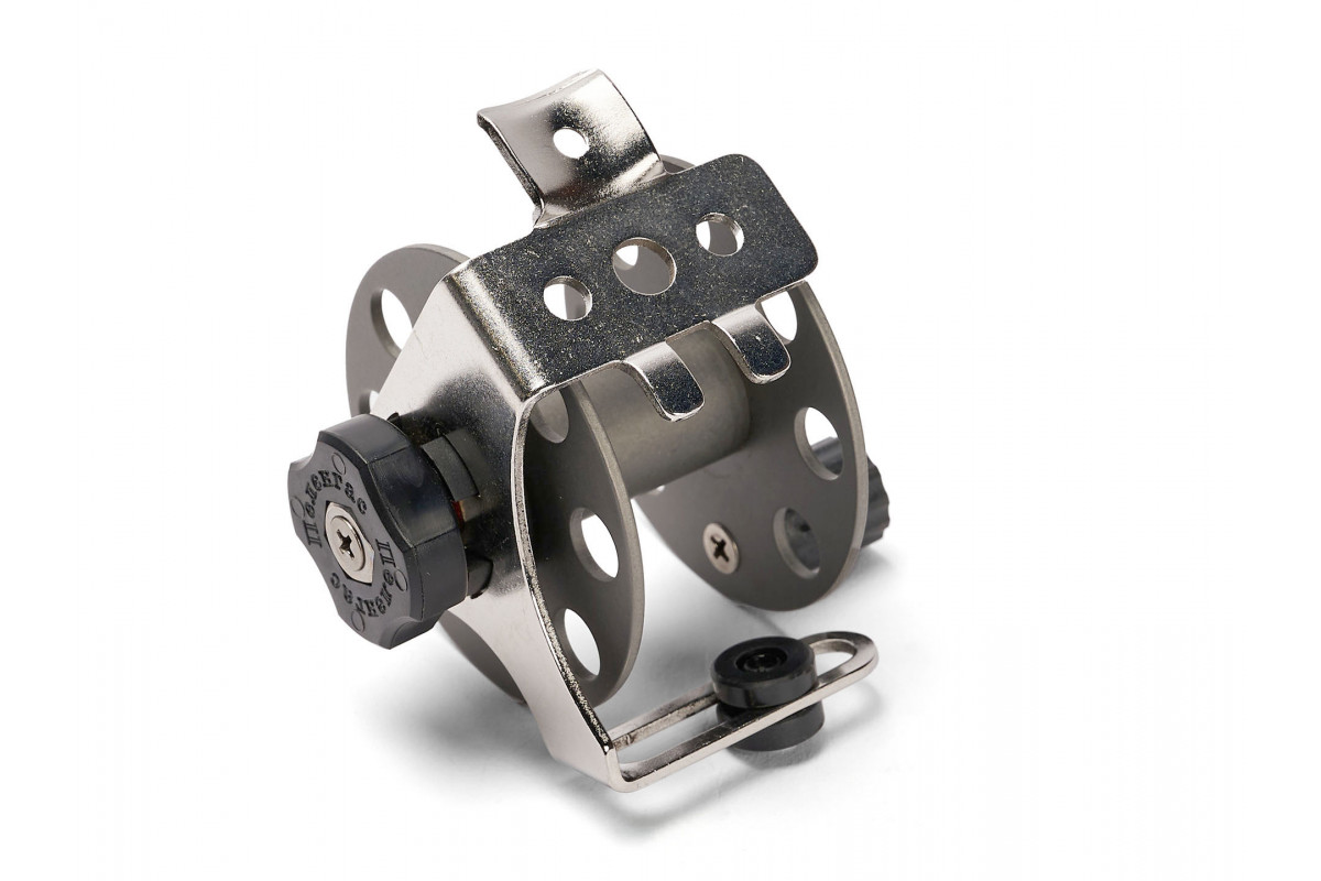 PELENGAS алюминиевая с нержавеющим кронштейном 65 мм это катушка с очень мягким тормозом. Скользящий бегунок линеукладчика позволяет линю при размотке не путаться и не соскальзывать с бобины, а при намотке он ложится ровно и равномерно на шпуле, предотвращая перехлестывание линя. Подшипники скольжения фрикционного механизма выполнены из дерлина. Вместимость катушки: до 25 метров линя толщиной 1.5 мм.