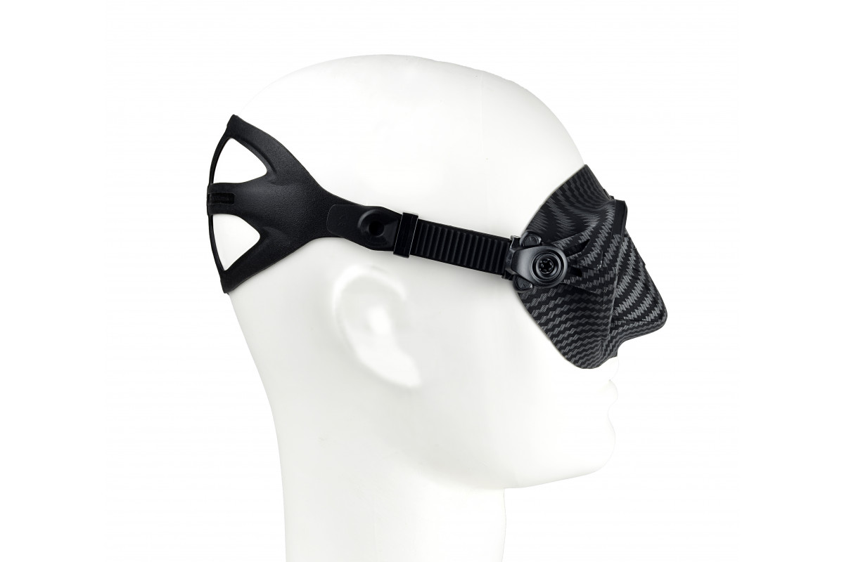 Удобный выступ для носа облегчает продувку. Система пряжек маски C4 CONDOR CARBON ANTIFOG позволяет пряжкам вращаться на 60 градусов, чтобы максимально точно соответствовать разным размерам головы. Длина ремешка удобно регулируется, а сам ремешок точно повторяет затылочный изгиб и в отличие от обычного плоского ремешка, обеспечивает исключительный комфорт и великолепное прилегание.