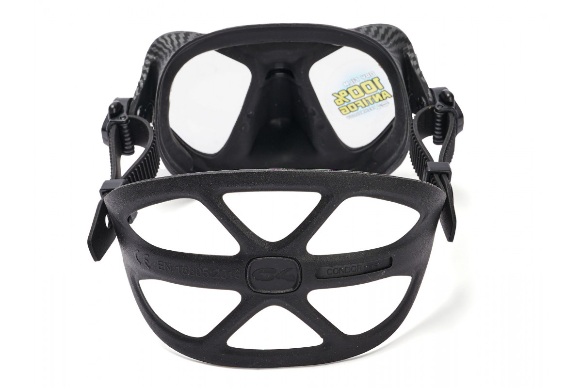 В стандартную комплектацию маски C4 CONDOR CARBON ANTIFOG входит новая технология защиты от запотевания. Компания C4 решила проблему запотевания масок для дайвинга и представила несколько моделей со специальными антизапотевающими пленками, установленными на внутреннюю поверхность линз. Эти пленки предотвращают запотевание в любой ситуации при соблюдении нескольких простых правил использования.