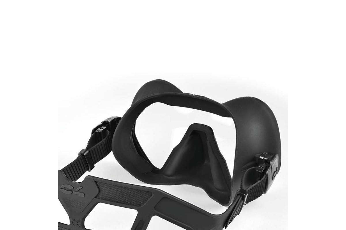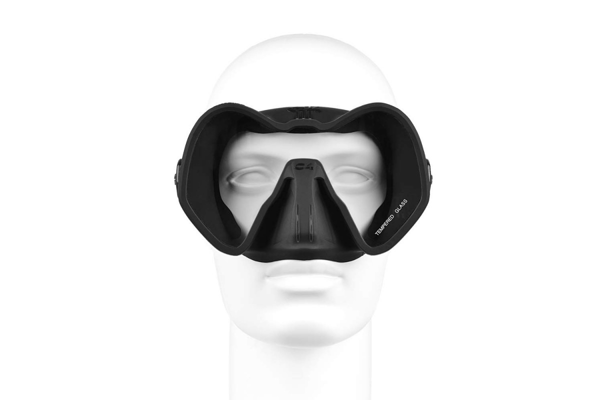 Маска C4 SKYLINE ANTIFOG моностекольная и безрамочная, стекла впрессованны в обтюратор и расположены максимально близко к глазам. Это модель имеет средний подмасочный объем, что позволяет снизить компенсационные усилия и сделать погружение более комфортным.
