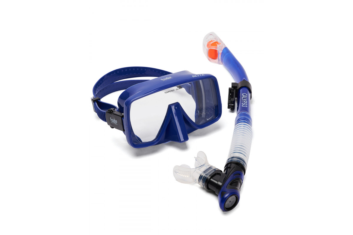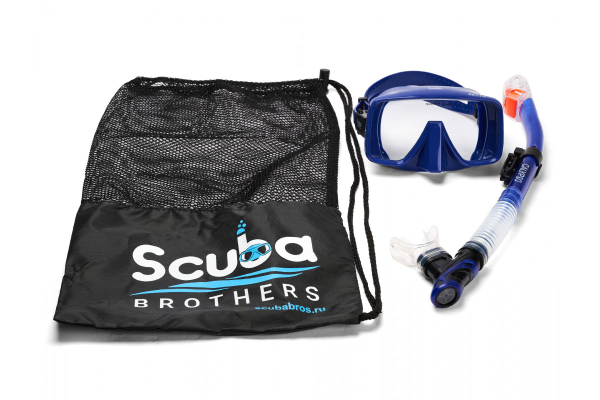 Комплектация: маска SCUBA BROTHERS BETTA GLOSS BLUE, трубка SCUBA BROTHERS CALYPSO BLUE, пластиковый бокс для хранения, сумки сетка SCUBA BROTHERS для транспортировки.