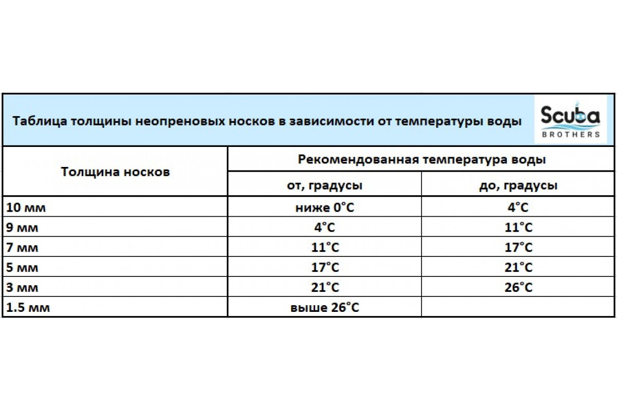 Носки могут быть изготовлены из неопрена толщиной 3, 5, 7 мм.