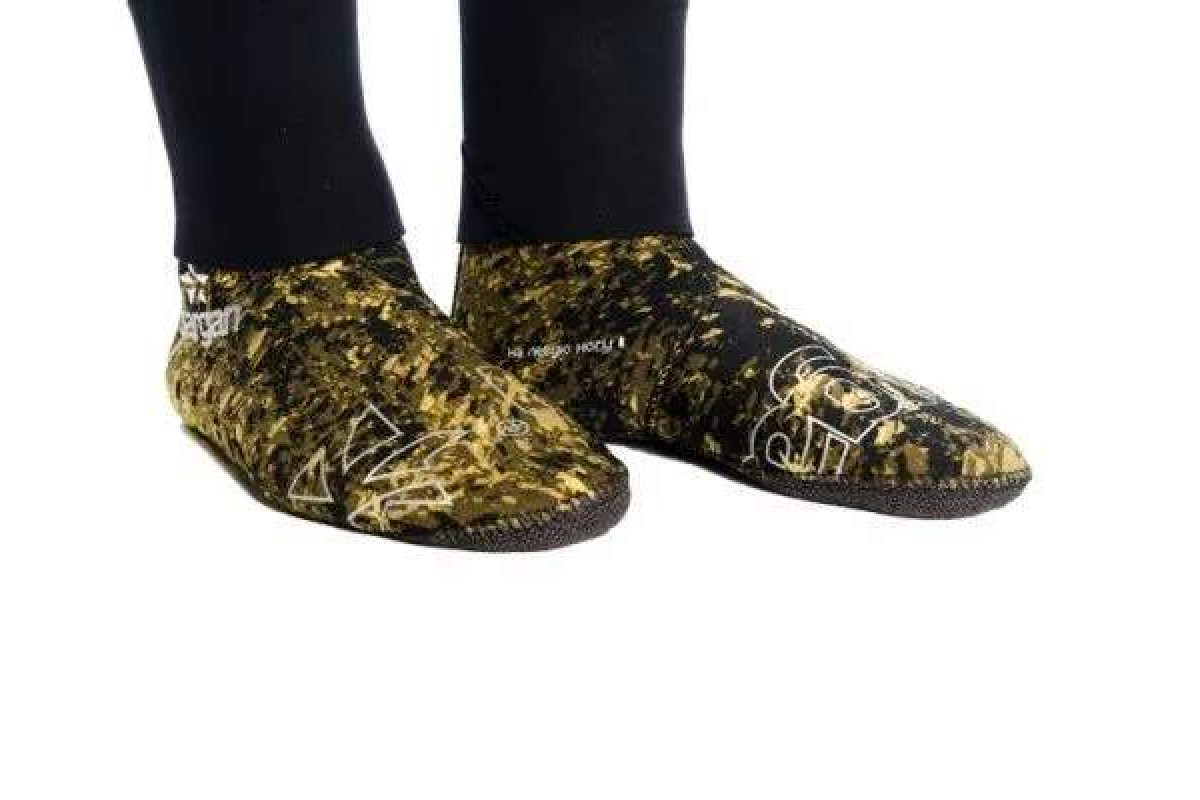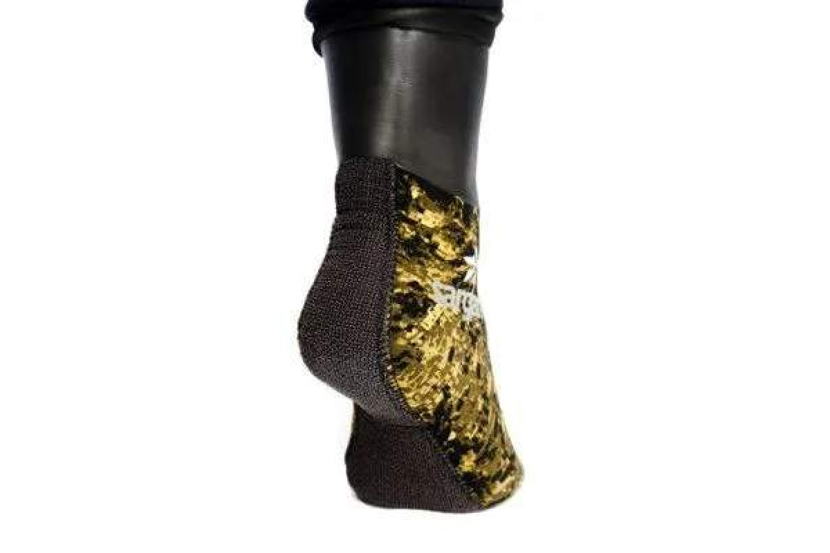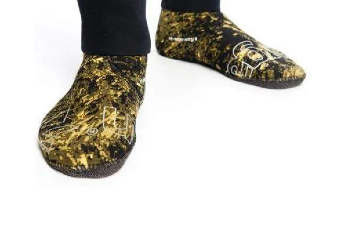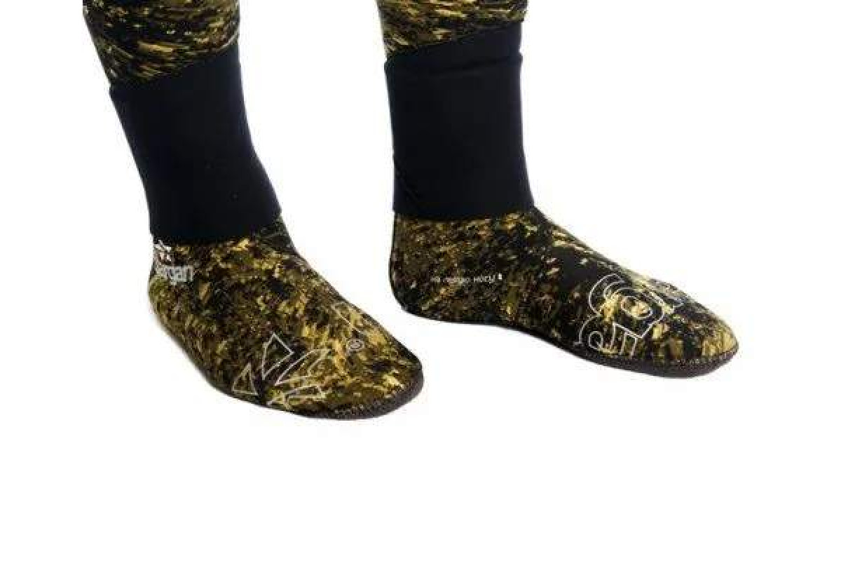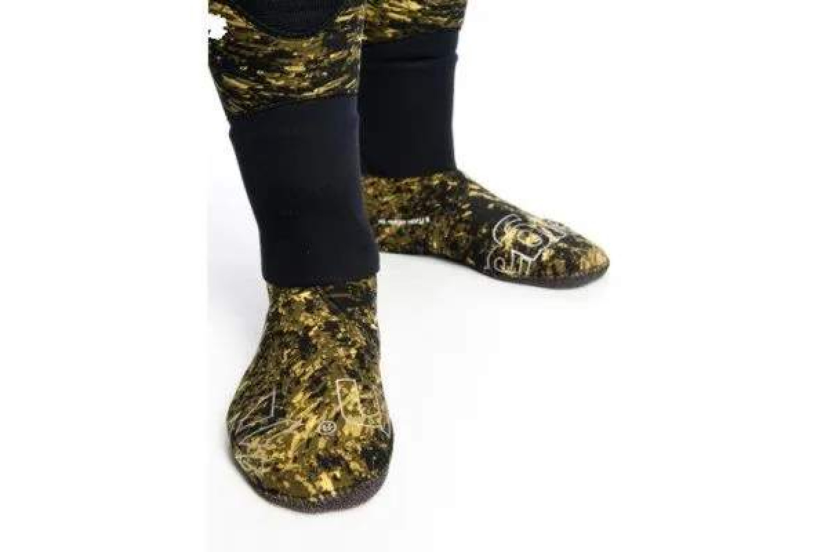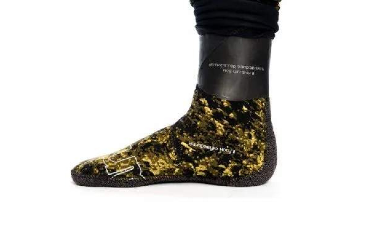 Материал носков — неопрен толщиной 9 мм, покрытый нейлоном снаружи и открытой порой внутри, что обеспечивает прочность, эластичность и надежную термоизоляцию.