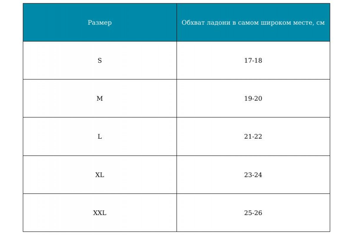 Размер | Обхват ладони в самом широком месте, см |