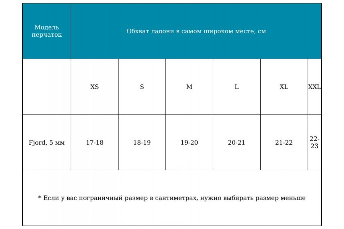 * Если у вас пограничный размер в сантиметрах, нужно выбирать размер меньше |
