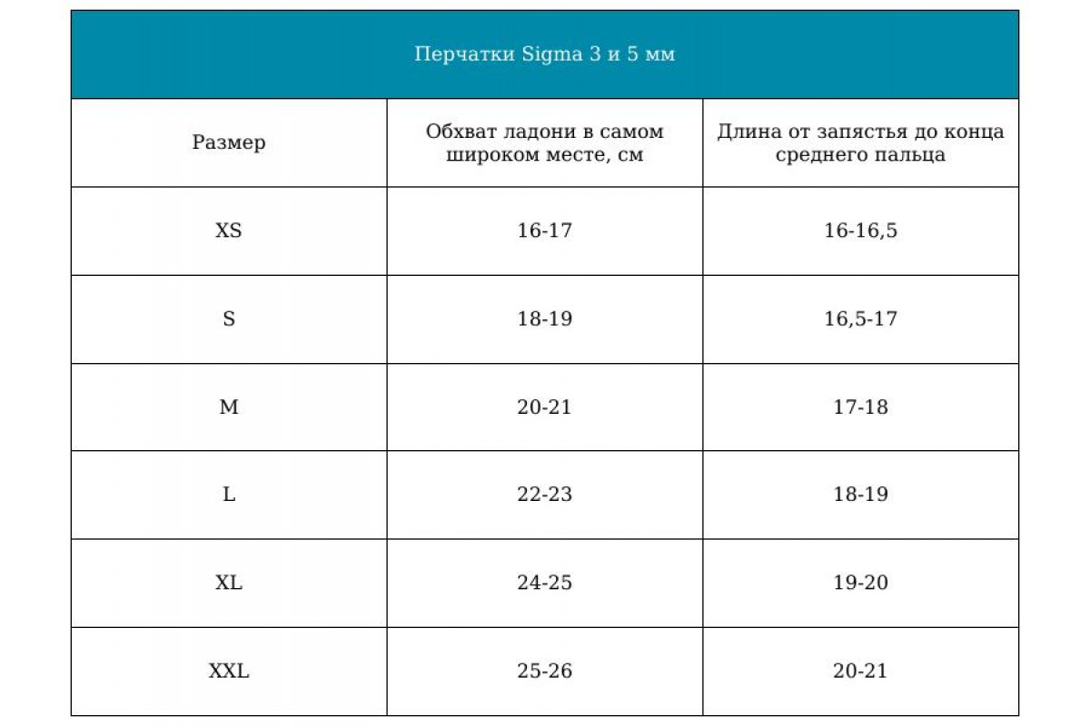 Размер | Обхват ладони в самом широком месте, см | Длина от запястья до конца среднего пальца |