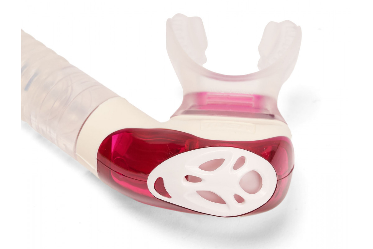 Верхний сухой клапан и нижняя дренажная камера эффективно предотвращают попадание воды в трубку. Загубник трубки, расположенный под углом, повторяет анатомическое строение челюсти, и дайвер при использовании трубки не чувствует дискомфорта, отсутствует усталость челюсти.